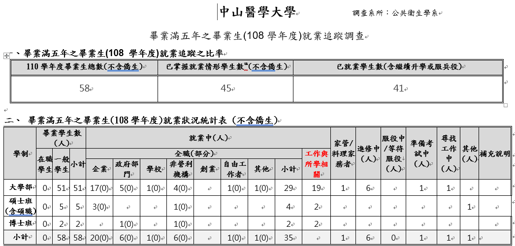 畢業滿5年畢業生流向情形(108學年度畢業)
