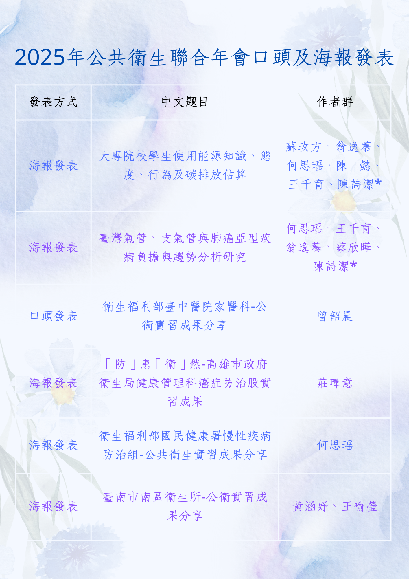 【恭賀】公衛年會發表名冊出爐